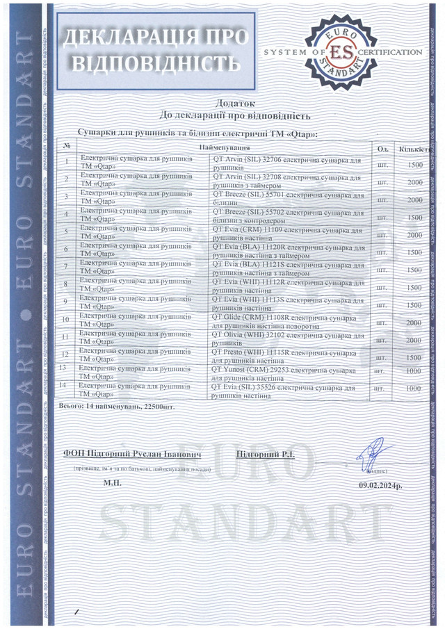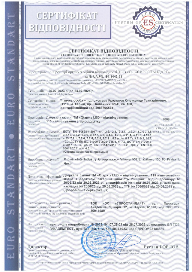 СертифікатиCertification Qtap sinks, washbasins, toilets, urinals Qtap Mirror Certificate Qtap certificate Dryers for towels