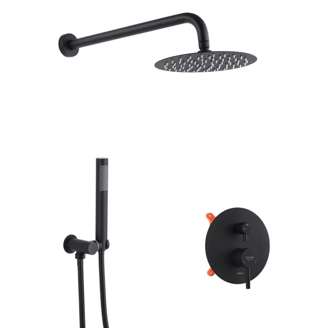Чорна душова система прихованого монтажу із змішувачем для раковини, душовий гарнітур Kroner