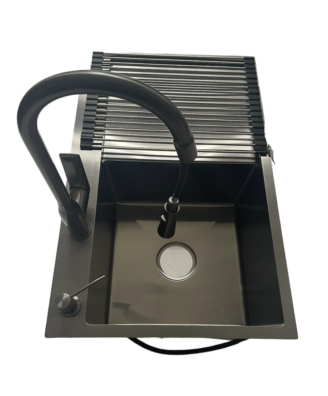 Мийка Lidz 7849BL PVD ліва та змішувач для кухні з висувним виливом Kroner Graz-GRP030-T Чорний